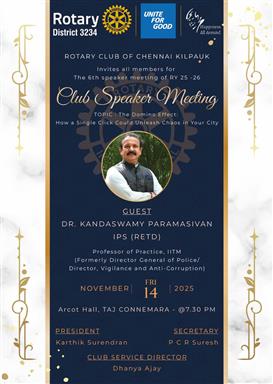 Rotary Club of Kilpauk had a meeting with the President and others . . .